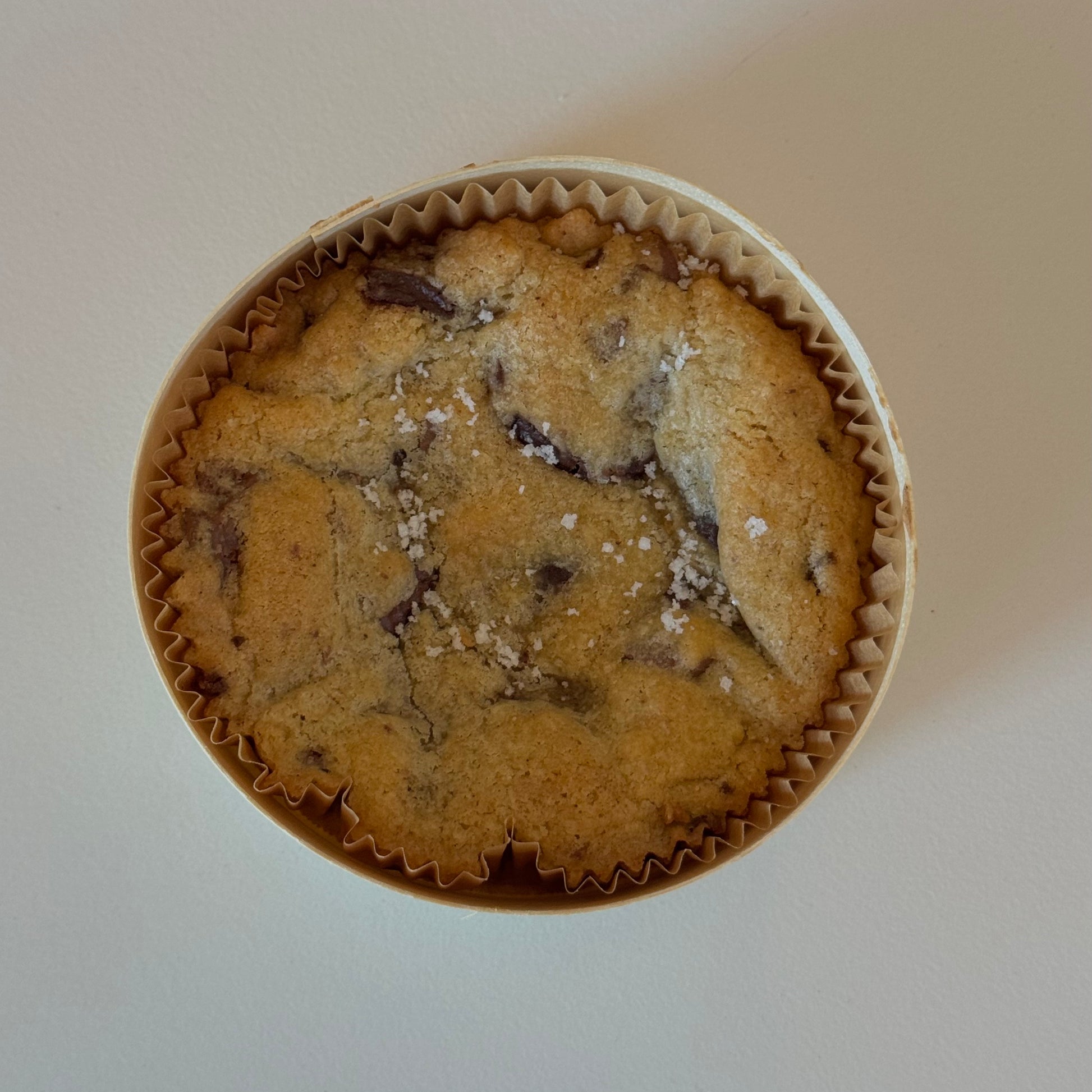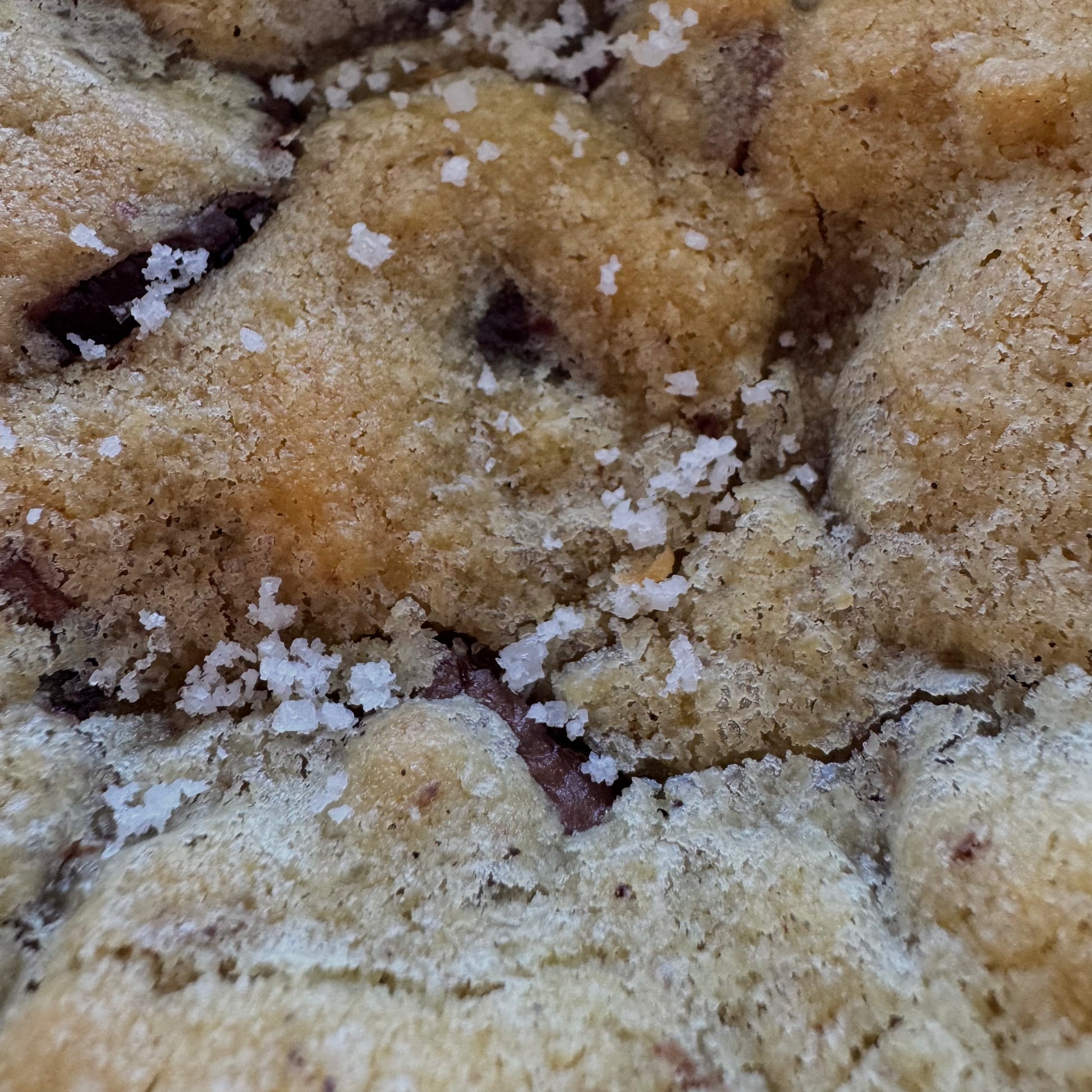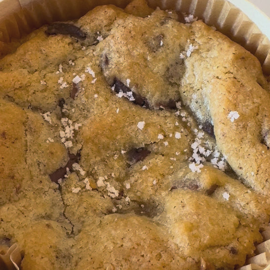 A cooky cake with dark and milk chocolate chips and a touch of fleur de sel. Moist and melt-in-the-mouth.